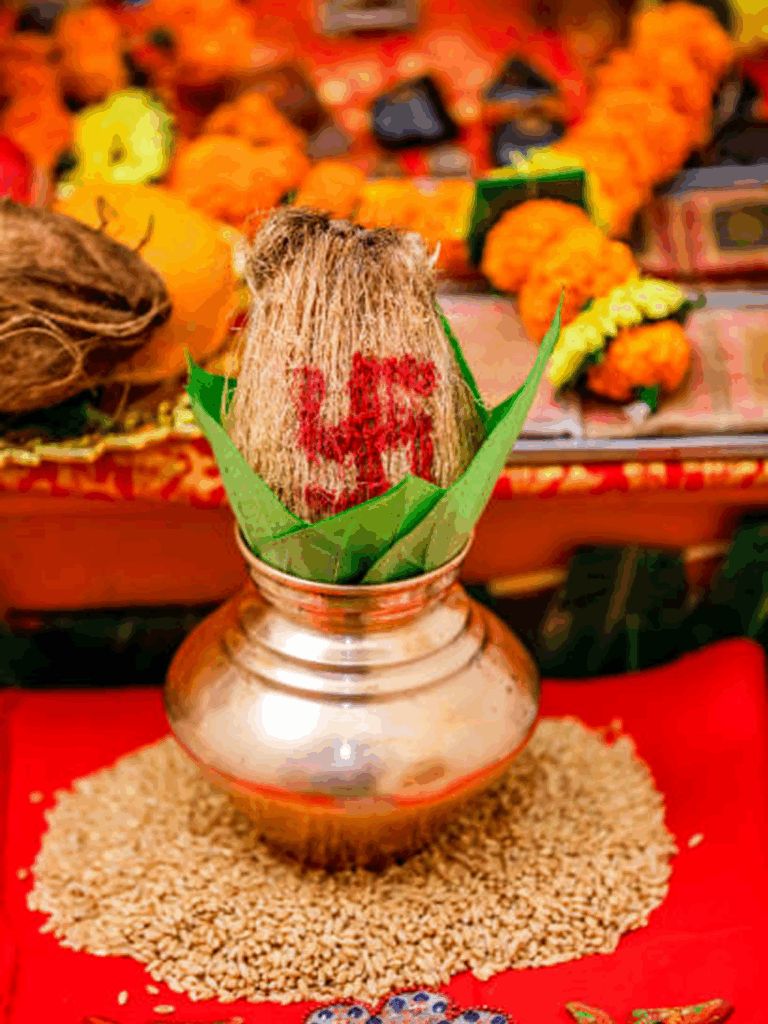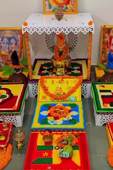 Swasti Vachan, Shanti Path, Sankalp, Ganesh Sthapan, Vardhani Kalash Sthapan, Lakshmi Sthapan, Vastu Purush Sthapan, Sarvato Bhadra Mandal Aahwan, Navgrah Sthapan, Brahma Sthapan, Agni Sthapan, Invocation of all Gods and Goddesses, Navgrah Mantra Japa (1 mala for each planet)