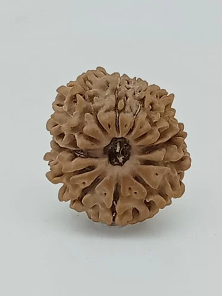 14 mukhi Rudraksha has fourteen natural lines ( mukhas ) on its surface. This Rudraksha is also known as a Divine Gem (Dev Mani ). This Rudraksha is considered to have come directly from the eyes of Lord Shiva who himself wears this bead.