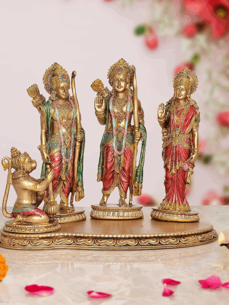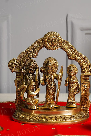 Devi Maa Sita is the incarnation of Goddess Lakshmi ji, Lord Lakshman is the incarnation of Sheshnaag while Lord Hanuman is the incarnation of Lord Shiva. Hence, offering Prayers in a Ram Darbar is one of the most auspicious ritual and the devotee is bestowed with Eternal Peace, Satisfaction, Health, Wealth and a contended life by the blessings of Ram Darbar. This Prayer also works as a shield to protect the worshipper from all kinds of troubles, diseases, enemies, dangers and obstacles thereby paving a path to glorious Success, all round Prosperity, Fame and Luxuries.