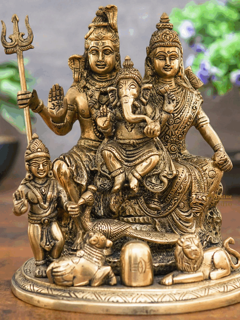 Goddess Parvati has taken various incarnations in the form of Nav Durga and Das Mahavidya and praying to Goddess Parvati brings Peace, Prosperity and Longevity of life in Family. Lord Kartikeya is the elder Son of Lord Shiva & Goddess Parvati and he is the Leader of Celestial Army since he is the giver of Courage, Cleverness, Power of Learning, Concentration as well as enhanced Wisdom and Knowledge. Worshipping Lord Kartikeya also saves a person from worldly sorrows due to enhanced knowledge and increased energy and courage. Lord Ganesha is the younger Son of Lord Shiva & Goddess Parvati and is also known as Vighnaharta (Remover of Obstacles). Lord Ganesha is also known as Ashtavinayaka, Ekadanta, Gajanana, Vakratunda and Ganpati. Lord Ganesha is always worshipped before starting any important work like a new Business, House construction or any other undertaking. He is the bestower of Auspiciousness, Success, Intelligence, Education, Knowledge, Wisdom as well as Wealth & Prosperity. By worshipping Shiva Parivar, one can have Peace, Prosperity and Unity in the family. Since worshipping Lord Shiva Pariwar gives blessings of all the four deities (Lord Shiva, Goddess Parvati, Lord Kartikeya & Lord Ganesha) together.