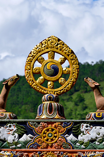 Their daily life follows a strict schedule that revolves around meditation, study of scriptures, and taking part in ceremonies. There are Buddhist shrines, Buddhist monasteries, where monks live, Gompas and Buddhist Stupas all over the world. Though it originated in northern India, the Emperor Ashoka helped to spread Buddhism into South East Asian countries such as Sri Lanka, Myanmar, Thailand and Indo-China, from where it moved on to infuence people in the Himalayan kingdoms of Sikkim, Bhutan, Nepal, Tibet, Mongolia, Central Asia as well as China, Korea, Viet Nam and Japan. Around 95 per cent of the population in